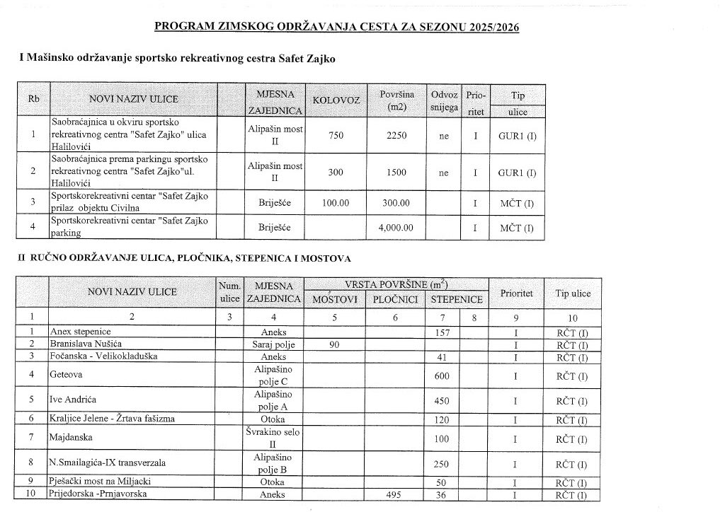 📎 U prilogu se nalaze fotografije i izvod iz Programa rada JP LOKOM d.o.o. Sarajevo za zimsko održavanje.