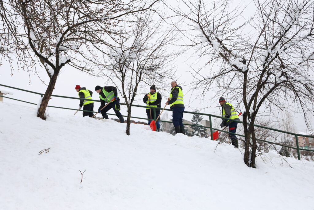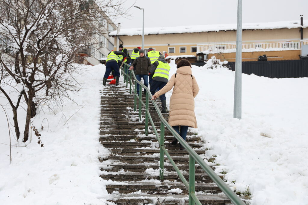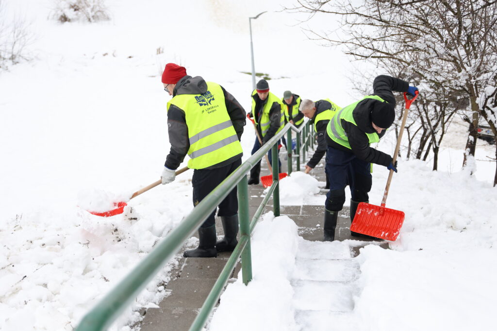 U okviru zimske službe angažovano je 25 radnika koji vrše ručno čišćenje trotoara, stepeništa, pješačkih prijelaza, mostova i drugih javnih površina namijenjenih kretanju pješaka.